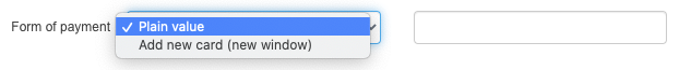Either use a pre defined card (from Settings ⇒ Corporate cards in your settings; https://xyz.traveknowledgy.com/en-GB/cards) or a Plain value such as CASH, NONREF etc