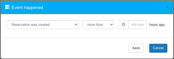Reservation was created, Original departure has commenced or One of the tickets were issued More than, Less than hours/minutes or Today.